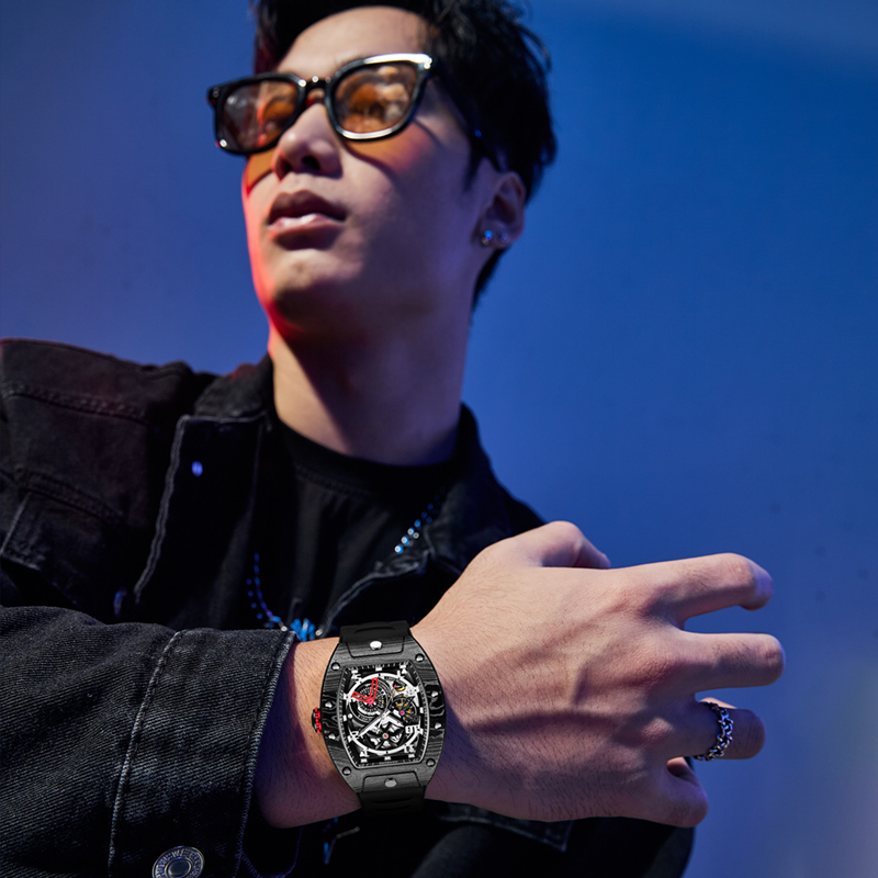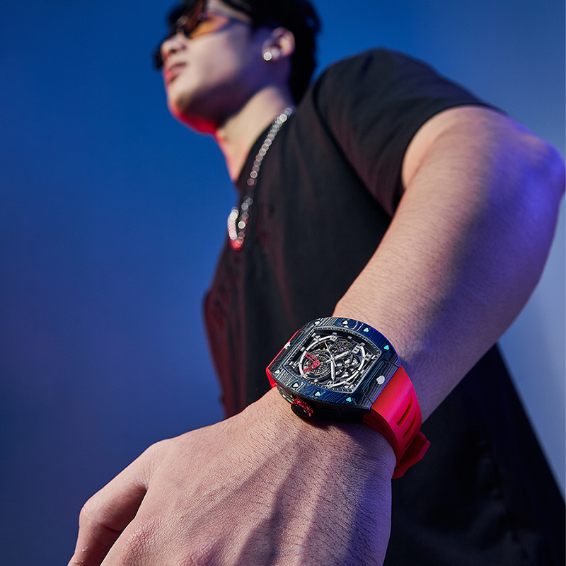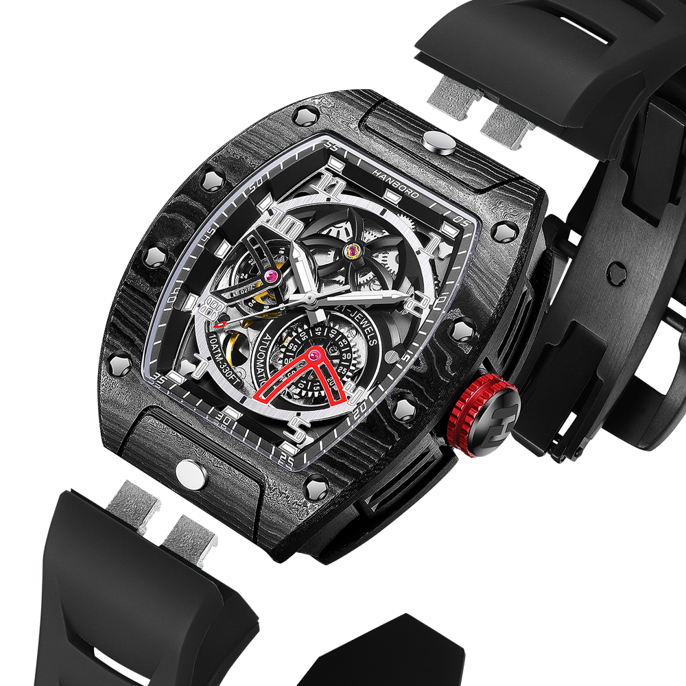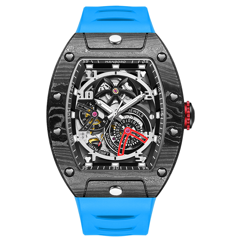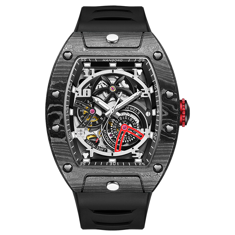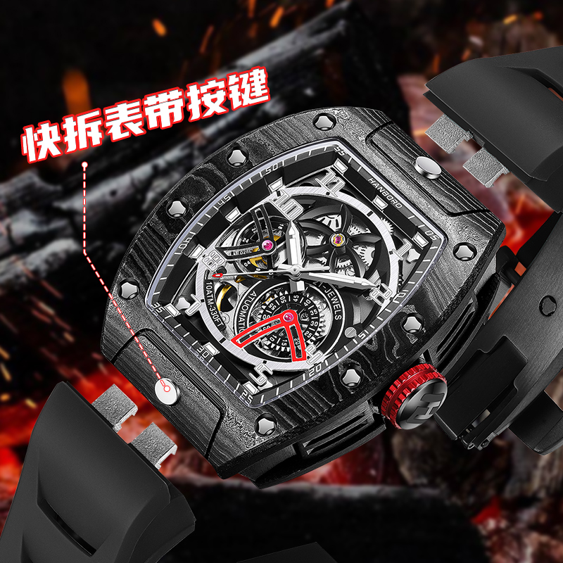 HANBORO衡宝罗超跑系列碳纤维多功能全自动机械手表镂空夜光男表945-3