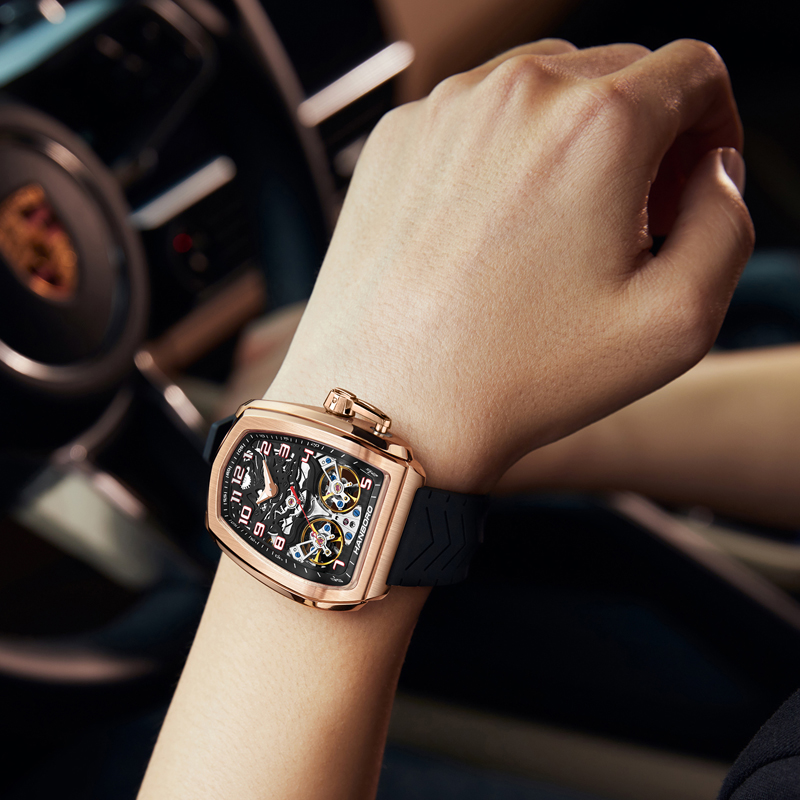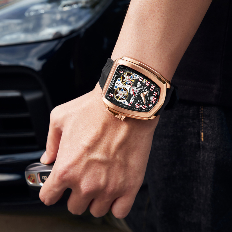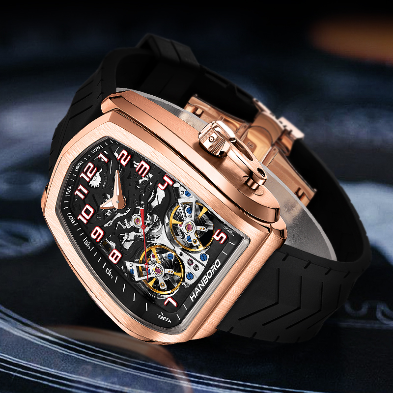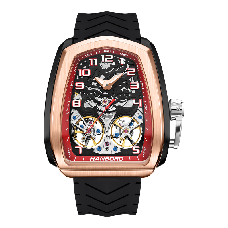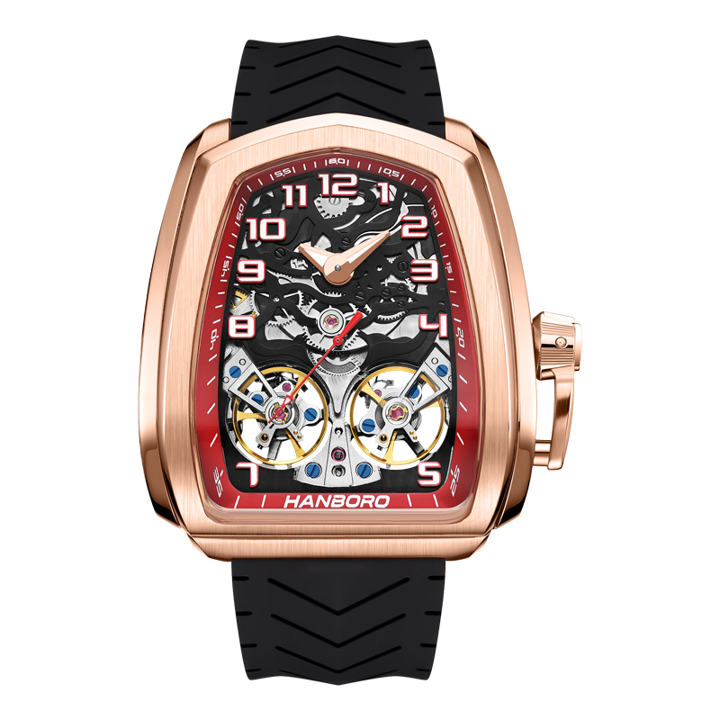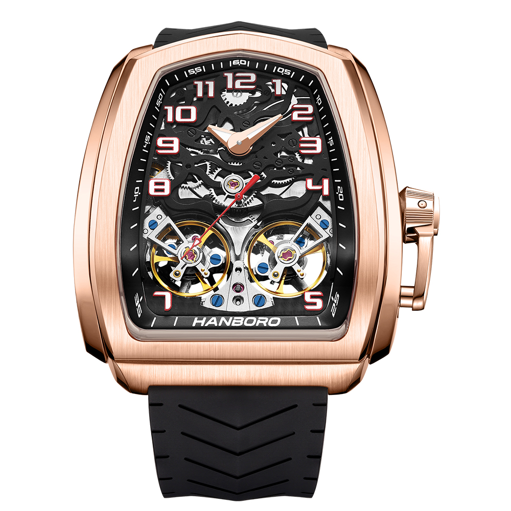 HANBORO衡宝罗SSR超跑系列双陀飞轮镂空全自动方形机械表防水夜光硅胶带男表985