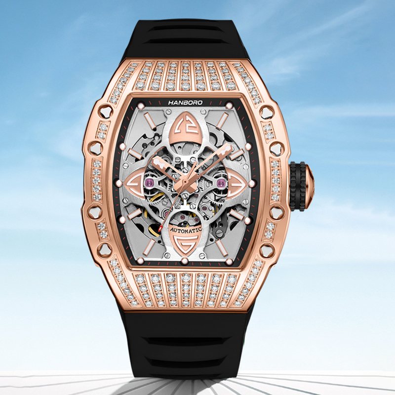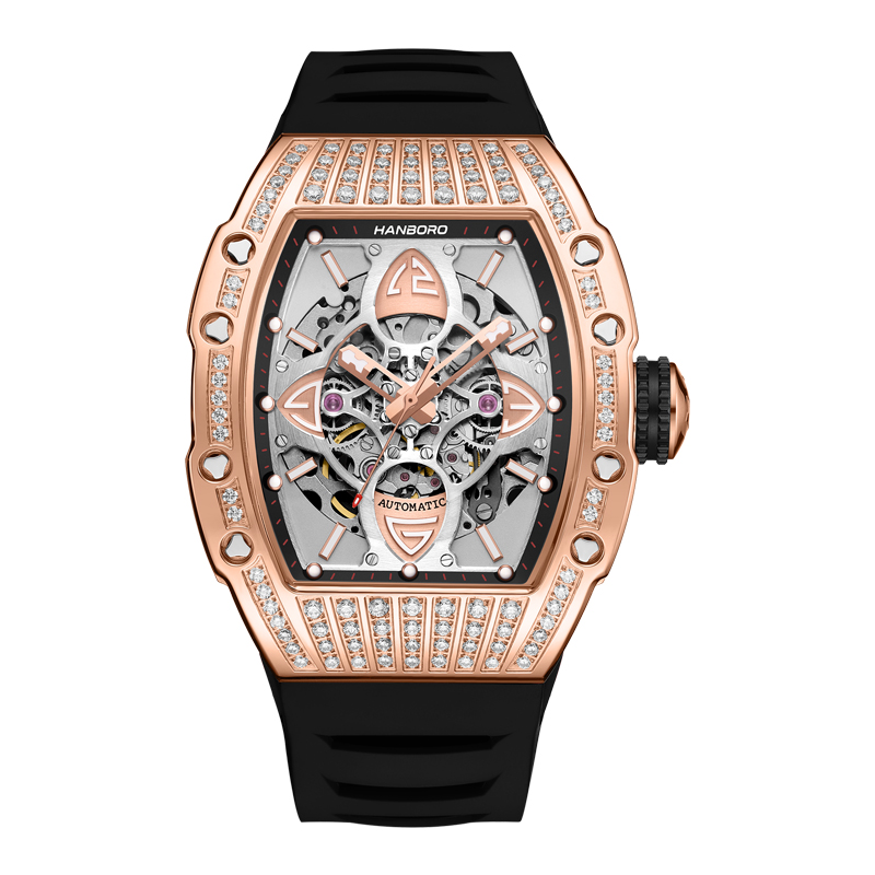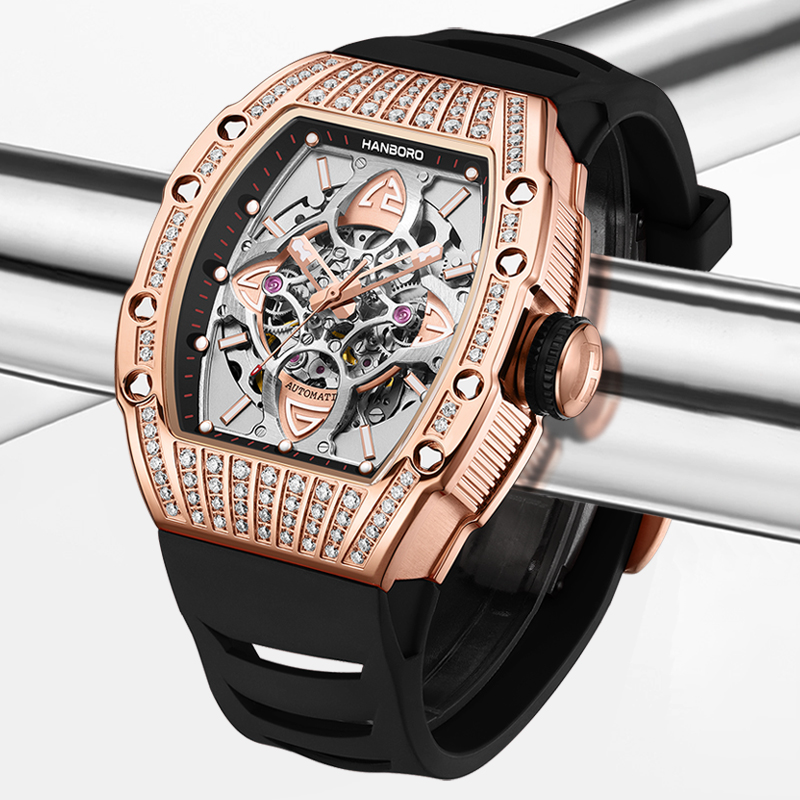 衡宝罗手表品牌十大品牌飞轮全自动机械表黑科技防水镂空橡胶带手表男989-4
