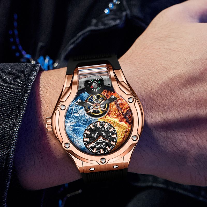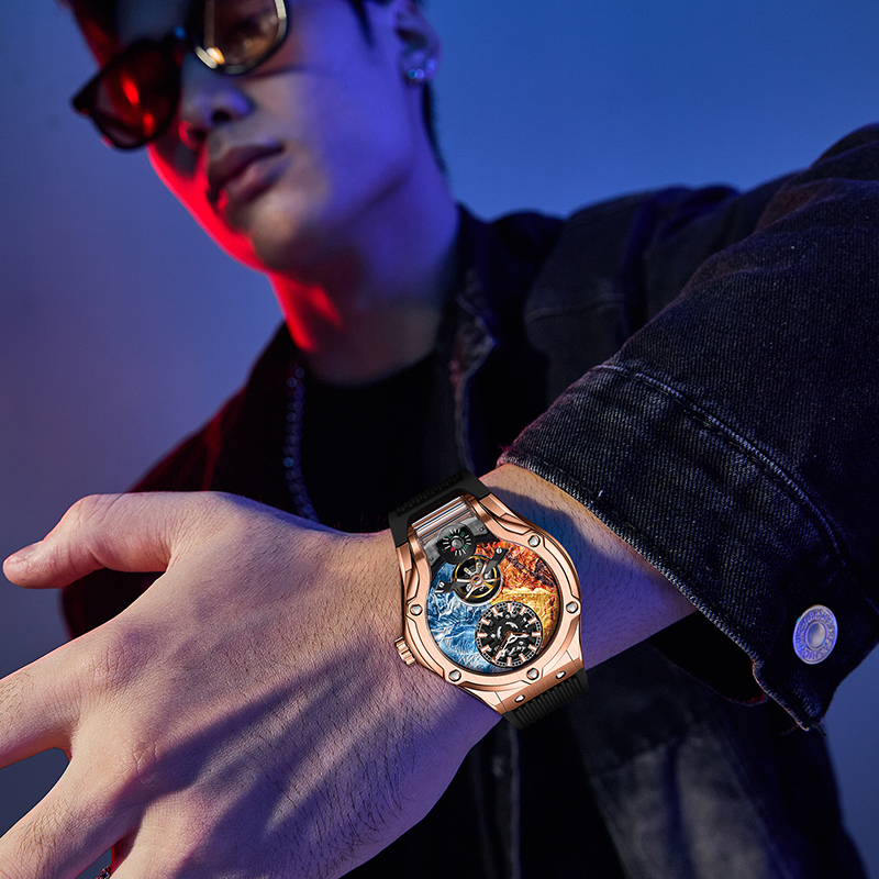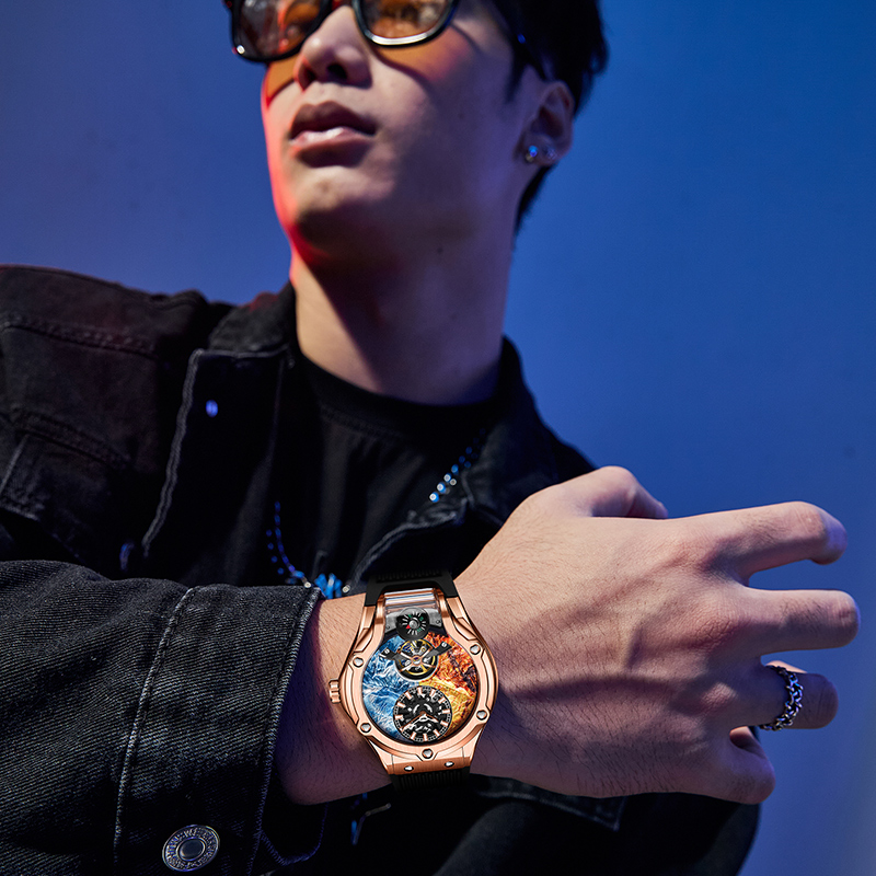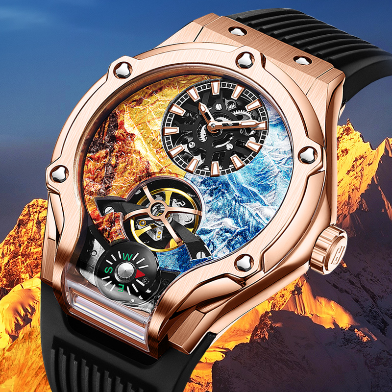 HANBORO衡宝罗珠玛山峰系列男士全自动机械手表镂空个性腕表981