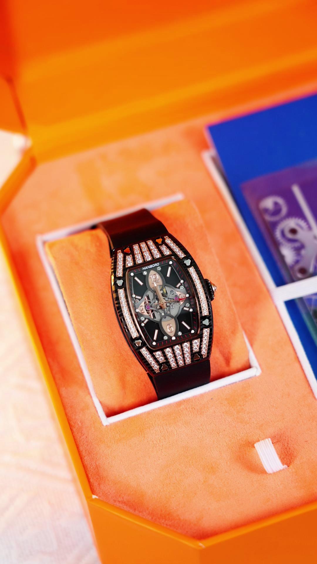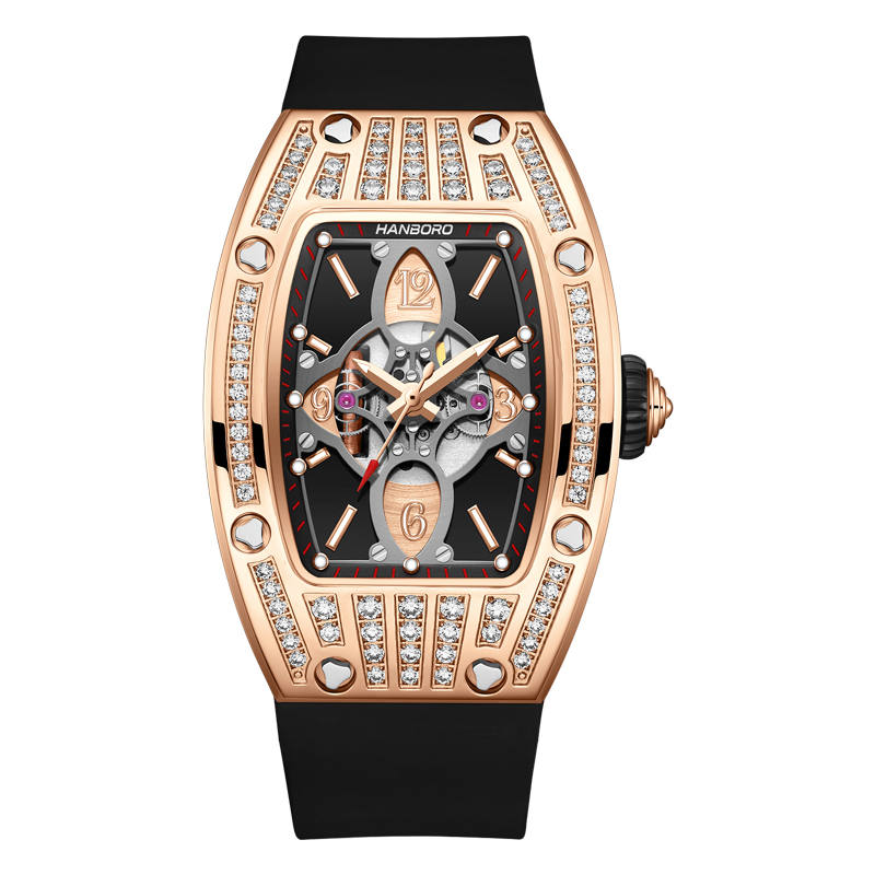 衡宝罗HANBORO新款方形时尚潮流个性防水表镶钻石英女表8008-2